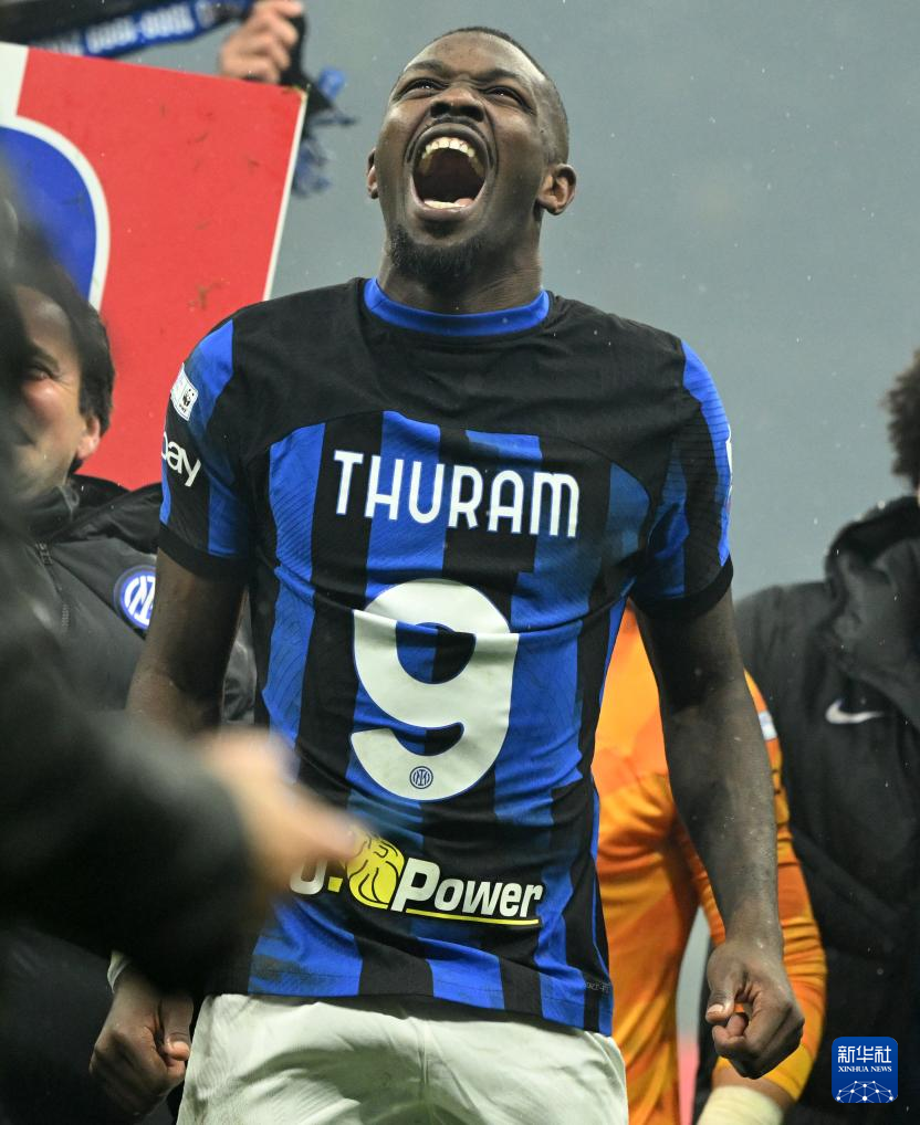 4月22日,國際米蘭隊球員圖拉姆在賽后慶祝。新華社發(fā)(阿爾貝托·林格利亞攝)
