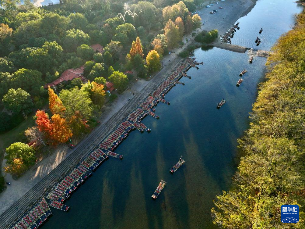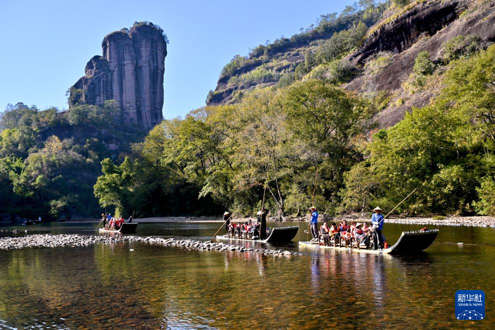 近日,福建武夷山天藍(lán)水碧,綠水青山中色彩斑斕的楓樹、水杉等林木點(diǎn)綴其間,呈現(xiàn)別樣的冬日景致,吸引游客前來旅游休閑。新華社記者 姜克紅 攝