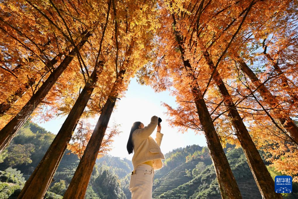 12月1日,游人在福建武夷山洋莊鄉(xiāng)吳三地村附近拍攝杉林景觀。