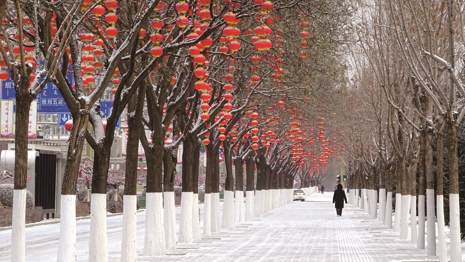 近日,赤峰迎來(lái)降雪天氣。中心城區(qū)一派銀裝素裹,尤其是皚皚白雪與迎春紅燈籠相映成趣,營(yíng)造出濃濃的喜慶祥和氛圍。(周建軍)