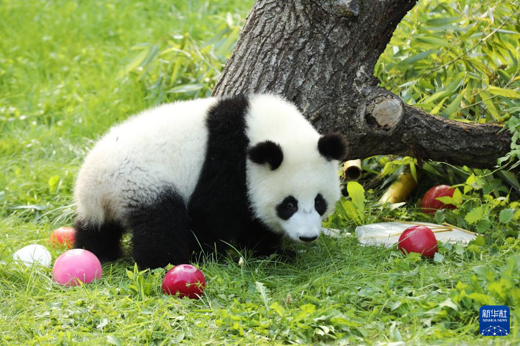 當(dāng)天,柏林動(dòng)物園為這對(duì)“姐妹花”精心準(zhǔn)備了一場(chǎng)特別的生日慶?;顒?dòng)。記者在現(xiàn)場(chǎng)看到,“熊貓園”內(nèi)豎起一塊醒目的紅色數(shù)字木牌“1”,象征它們成長(zhǎng)的第一個(gè)年頭。場(chǎng)地上擺放著由甜菜汁和胡蘿卜汁制成的彩色冰球,插著一捆“竹蠟燭”,以及凍有竹子的大冰塊生日蛋糕。